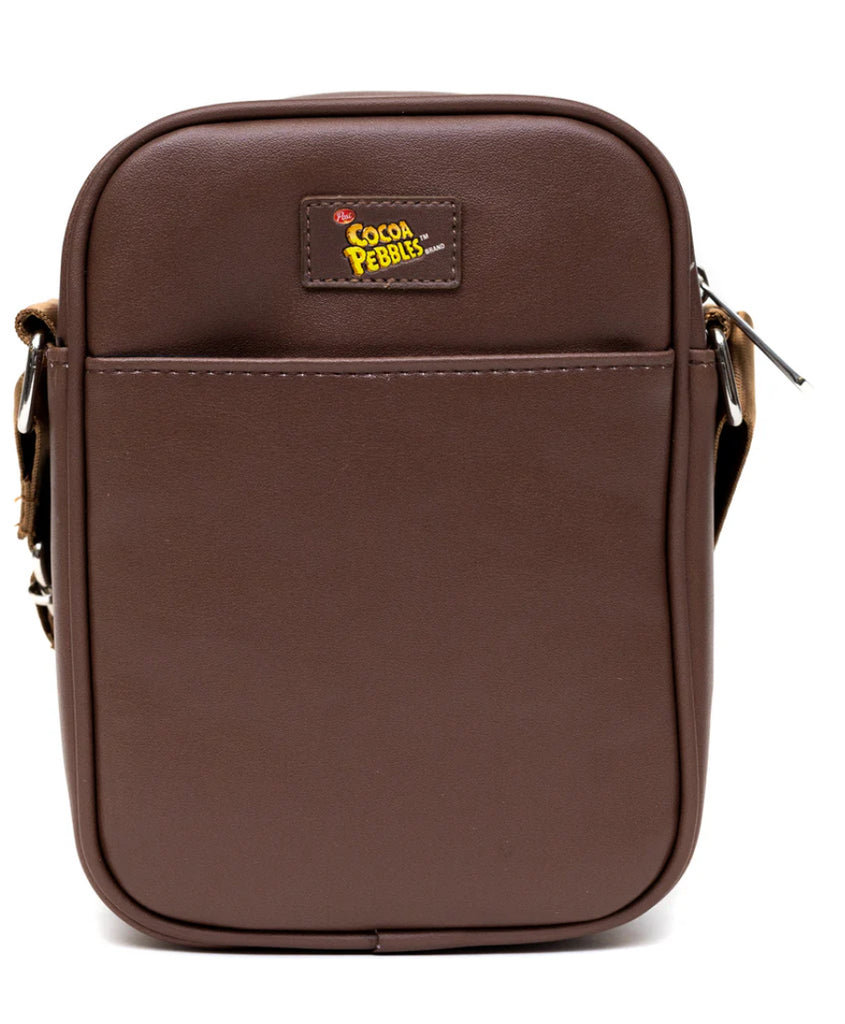 Crossbody Bag with Pocket - Cocoa Pebbles Fred Flintstone and Barney Rubble Cereal Box Replica Brown