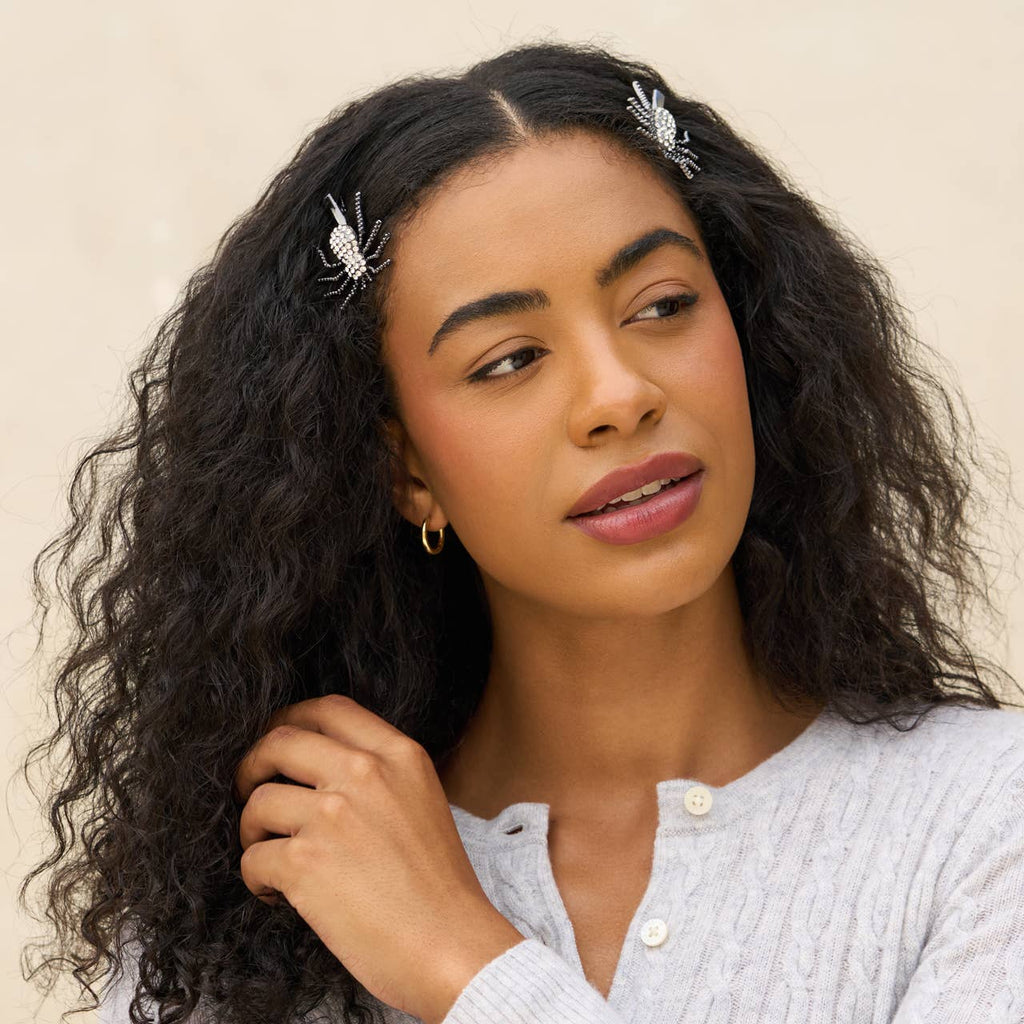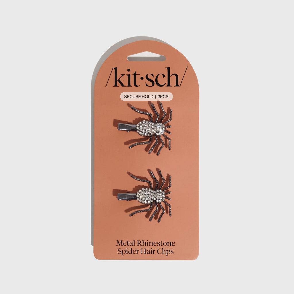 Add a dash of Halloween spirit to your hair with KITSCH's Metal Rhinestone Hair Clips 2pc Set - Spider. These clips not only secure your hair but also add a fun and spooky touch to your look. They're perfect for Halloween parties or for anyone who enjoys adding a bit of whimsy to their style. As with all KITSCH products, these clips are created with sustainability in mind, offering you a beauty solution that's as responsible as it is stylish.